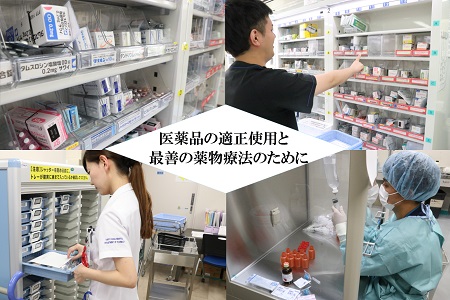 関東労災病院薬剤部では、「病院の理念・方針に沿い、医療の担い手として医薬品の適正使用、安全管理を推進し、医療チームの一員として患者さん中心の最善の薬物療法を支援します」 を理念として、また