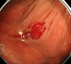 上部消化管内視鏡検査の偶発症(ぐうはつしょう)としてまれに、消化管出血、穿孔(せんこう:穴が空くこと)などが生じることがあります。入院や緊急の処置・手術が必要となることがあります。出血、穿孔などの発生頻度は全国集計で0.012%と報告されています。