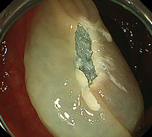 | 5:切除面をクリップで縫合閉鎖し、回収した検体の病理検査に提出します |