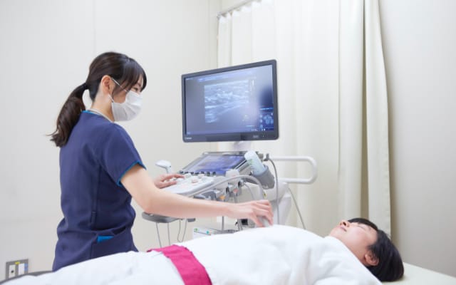 診察内容は、視触診、超音波検査、マンモグラフィー撮影となります。必要に応じ、細胞診、乳房MR、CT、シンチ等を診断や治療方針決定のために日本乳癌学会所属の女性医師が診察を行います。また、マンモグラフィー撮影についてもマンモグラフィー検診精度管理中央委員会撮影認定(Aランク3人、Bランク2人=計5人)の女性診療放射線技師が行います。